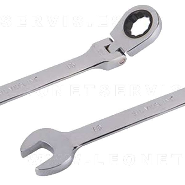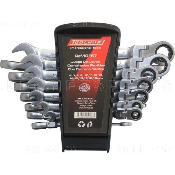 Juego de llaves combinadas con carraca de cabeza articulada. 14 piezas. 6-19