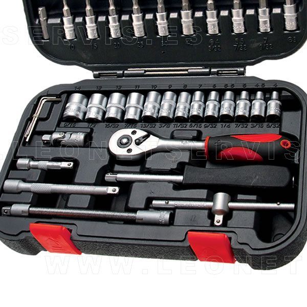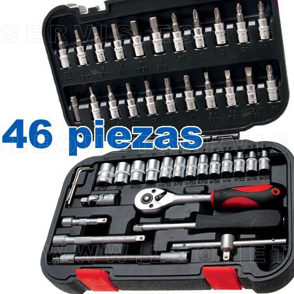 Maletín de herramientas de 46 piezas y una carraca de 1/4" de 72 dientes