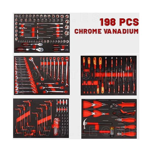 Carro de herramientas profesional con 7 cajones y 198 herramientas