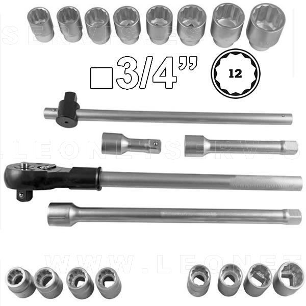 Juego de autoclé carraca con vasos de 12 caras y 3/4"