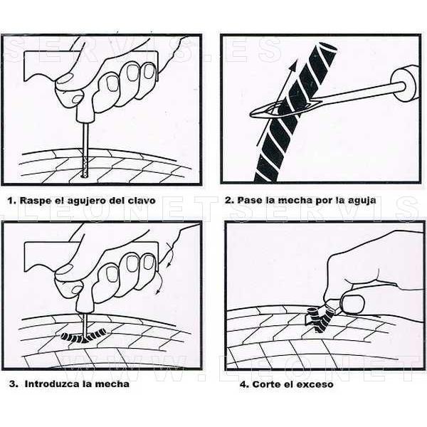 Para reparar los pinchazos producidos por clavos o tornillos.