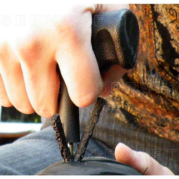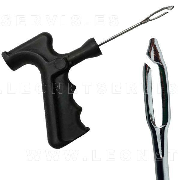 Esta herramienta de mano es indispensable para poder introducir los gusanillos o insertos en el orificio del pinchazo. Se utiliza después de haber preparado el orificio con el raspador.