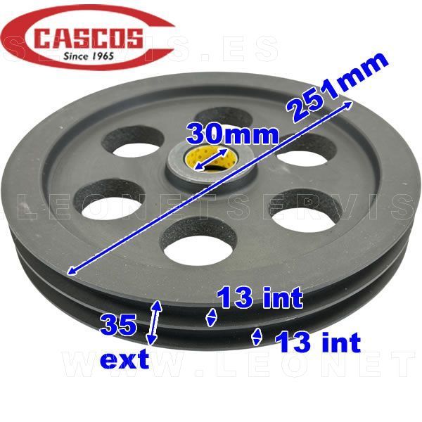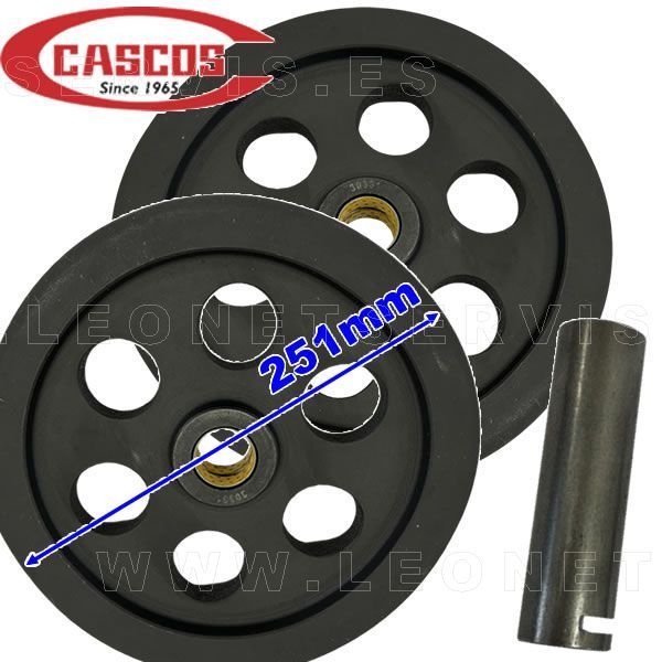 Conjunto de 2 poleas de 251 mm garganta doble + eje para elevadores de 4 columnas CASCOS