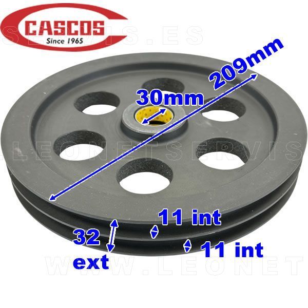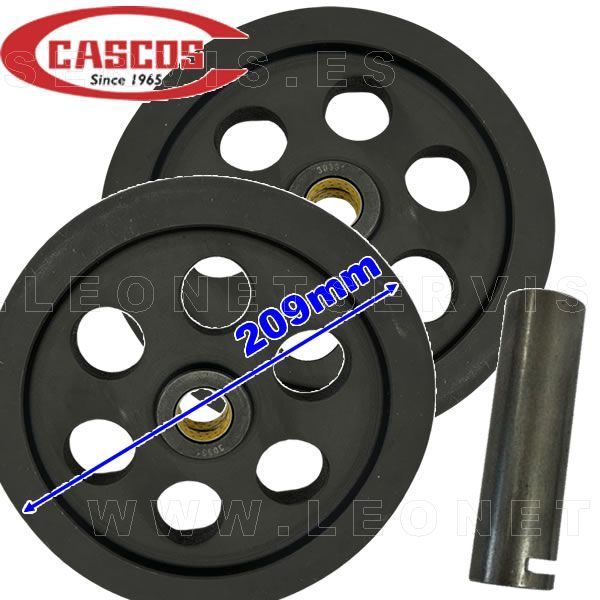 Conjunto de 2 poleas de 209mm y garganta doble + eje para elevadores de 4 columnas CASCOS