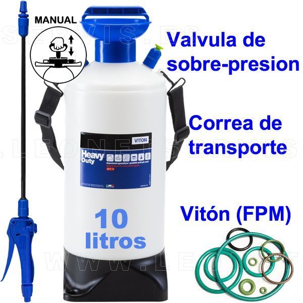 Pulverizador profesional de mombeo manual con presión previa. 10 litros