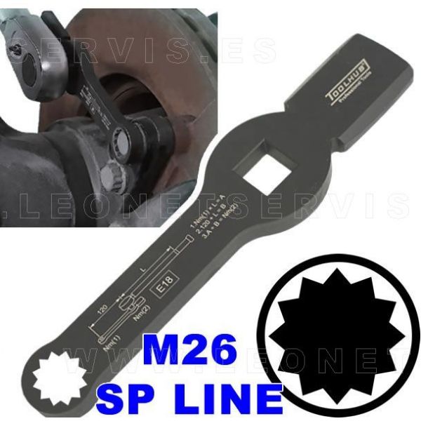 Esta llave SP LINE sirve para aflojar y apretar la pinza de freno en vehículos comerciales (también en en el eje delantero y del remolque).