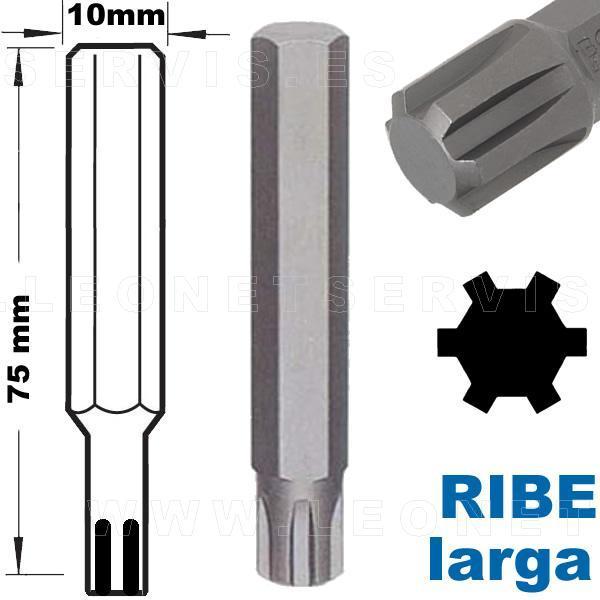 Herramienta que está fabricada en acero lo que hace que sea un instrumento de gran resistencia.Son puntas largas de 75 mm con diferentes medidas de ribe que son: M5,M6, M7, M8, M9, M10, M12, M14