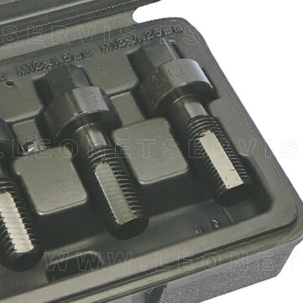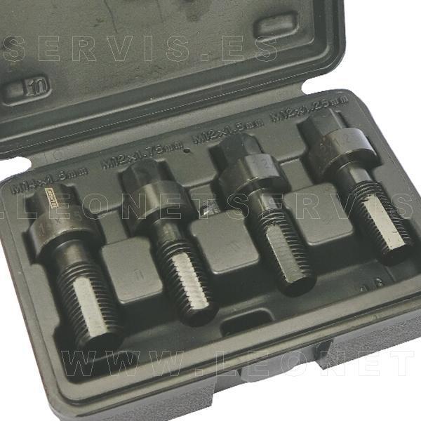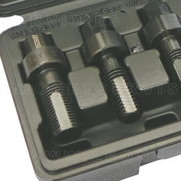 Equipo con 4 piezas para recuperar las roscas dañadas y la eliminacion de rebabas en las roscas de los tornillos de ruedas