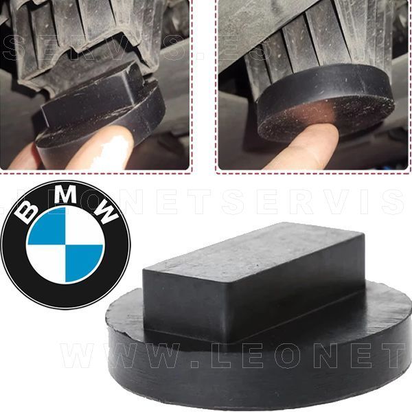 Taco de goma para los coches BMW y MINI para que al elevarlos no se estropeeen los soportes de elevación que ya están preinstalados en los alojamientos de la carrocería del coche.