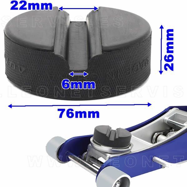 Taco de goma ranurado para gato de carretilla o gato de taller. 76x26 mm