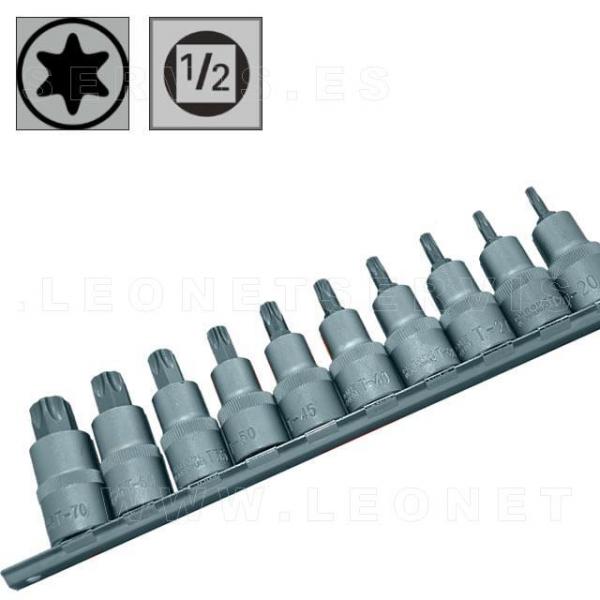 Juego de 10 puntas cortas Torx en vaso de 1/2