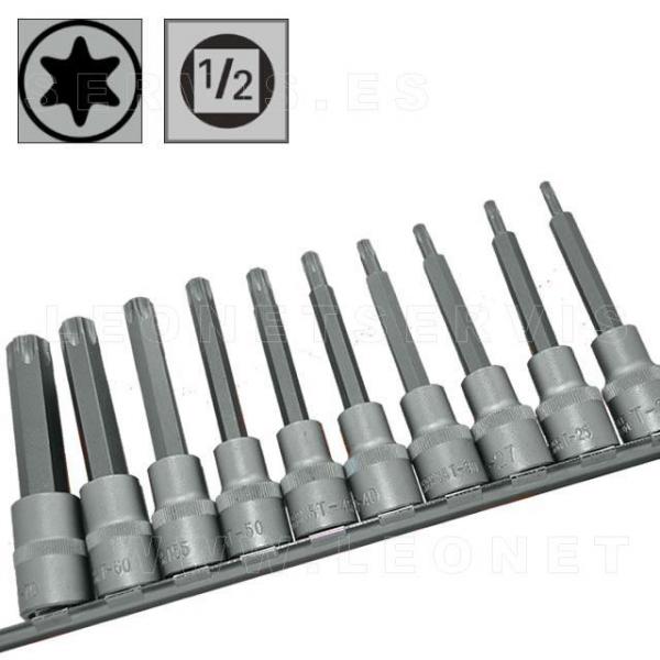 Juego de 10 puntas largas Torx en vaso de 1/2