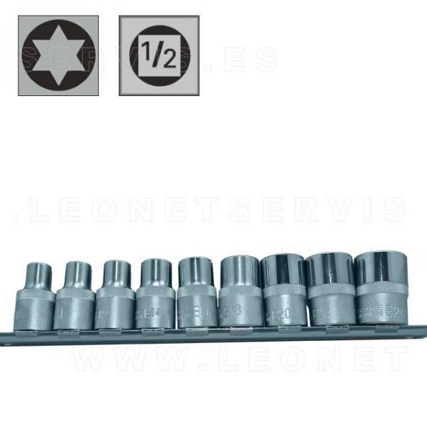 Juego de 9 vasos Torx cortos con cuadradillo 1/2