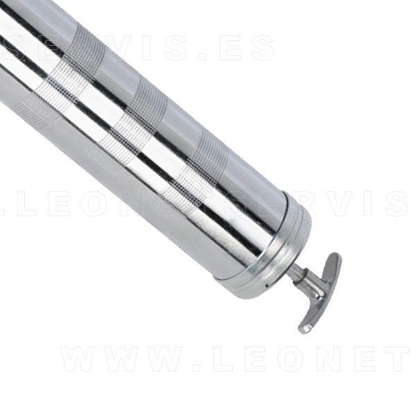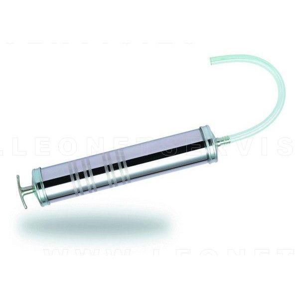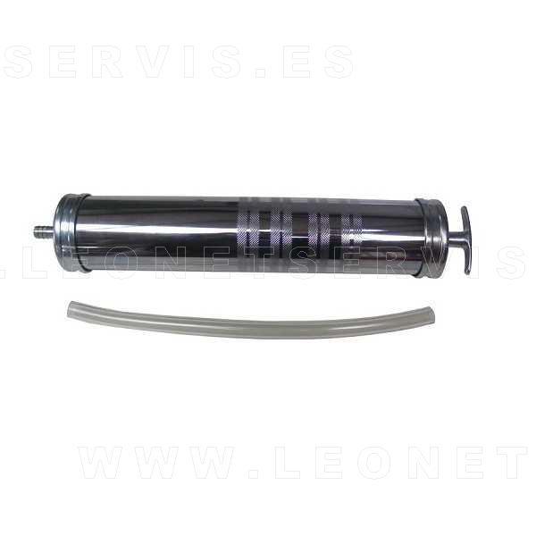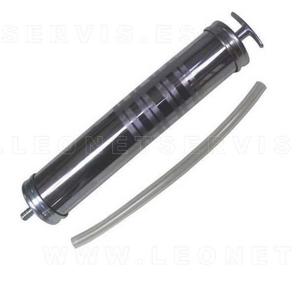Jeringa con tubo flexible que permite adaptarse a varias posiciones y proporciona un uso más fácil de la herramienta. Tiene una capacidad de 500 cc y el tubo es de 200 mm de longitud.