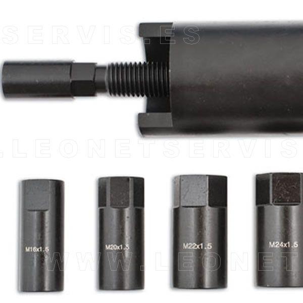 Extractor de eje de transmisión, diseñado para ejercer presión sobre el eje de transmisión a fin de forzar la introducción del cubo/brida impulsora en la caja del rodamiento.