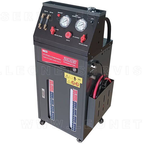 Este equipo está diseñado para facilitar el cambio de aceite y la limpieza del sistema de transmisión automática, asegurando un resultado perfecto antes de cargar el nuevo aceite. Para usarlo, simplemente conecta las tomas al vehículo y enciende la máquina.
