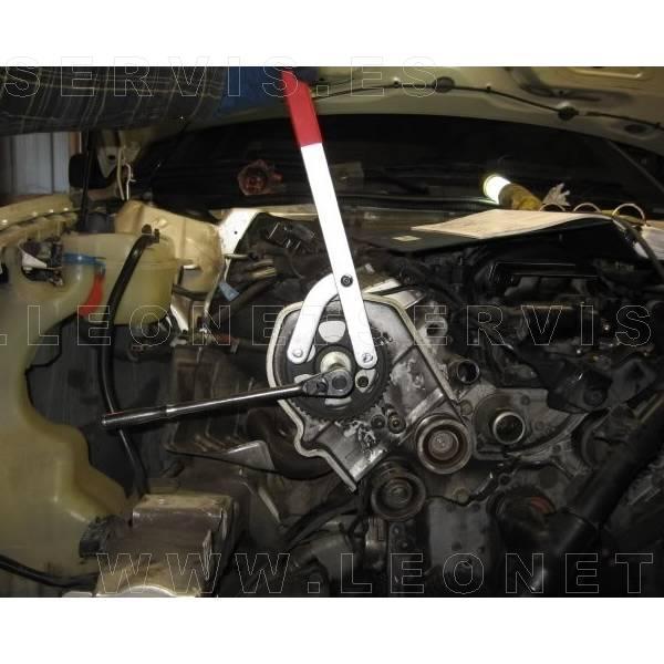 Herramienta de trabajo que tiene un gran número de aplicaciones puesto que tiene un ajuste variable.Se coloca sobre el radio del árbol de levas y permite tanto sujetarlo como realizar las operaciones sobre él que sean necesarias con precisión y exactitud.Con el uso de esta llave se consigue ajustar tanto la tensión como la alineación de esta parte del vehículo.