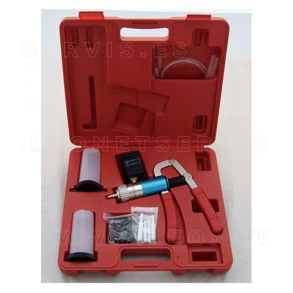 Se suministra este comprobador dentro de un estuche que incorpora accesorios para sangrar los frenos y los embragues, además de una bomba con función de presión/vacío.