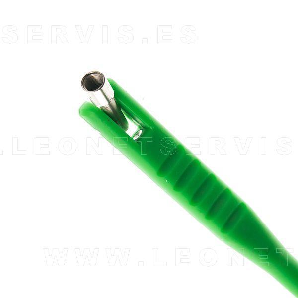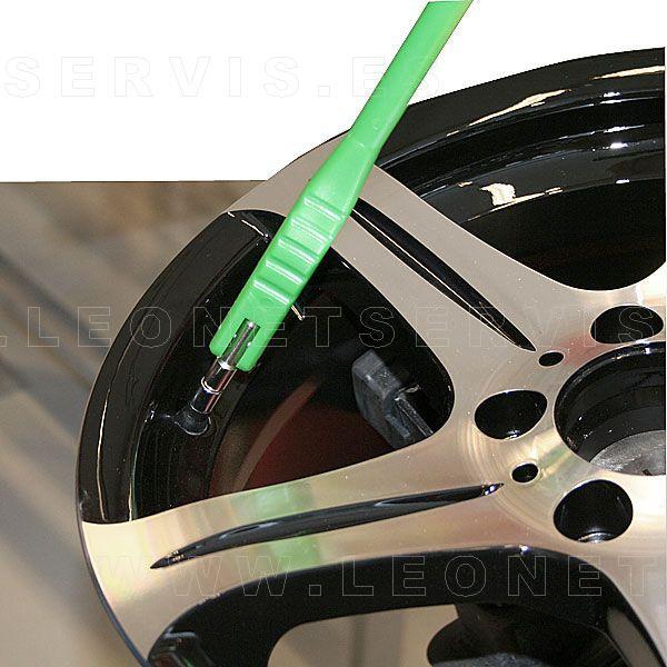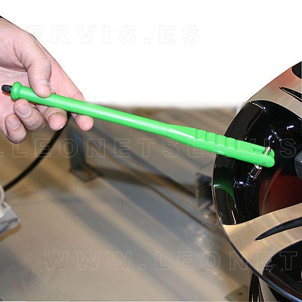 Herramienta para el montaje de las válvulas en los neumáticos. El mango es de plástico para evitar que las llantas de aluminio se dañen.