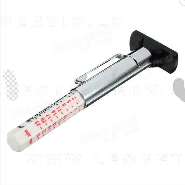 Medidor de calidad profesional para comprobar el desgaste del neumático. Perfecto para saber cuando es necesario realizar el cambio de los mismos.