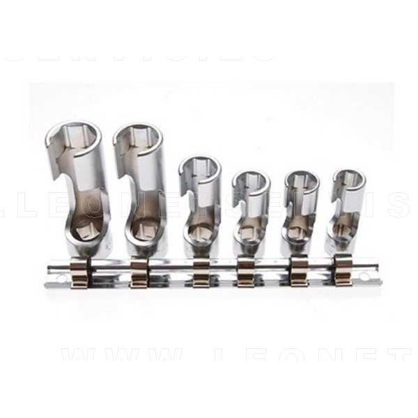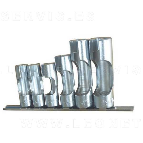Juego de vasos hexagonales de 3/8" con ventana. Gracias a la incorporación de la ventana estos vasos son perfectos para trabajar en zonas de difícil acceso. El kit de herramientas incluye vasos de las siguientes medidas: 10, 11, 12, 14, 17 y 19 mm