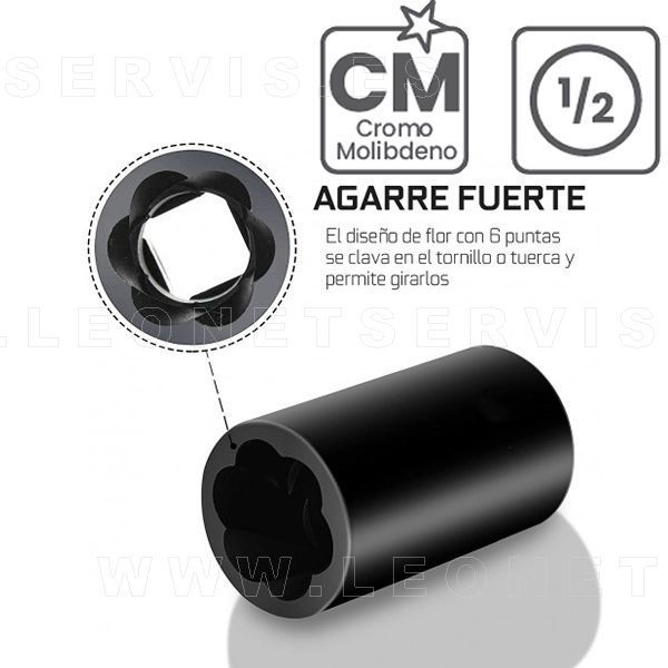 Juego de vasos 1/2" para quitar tornillos antirrobo o dañados