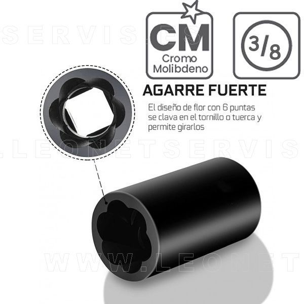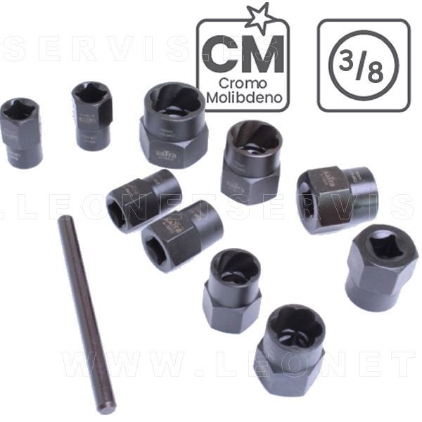 Juego de vasos 3/8" para quitar tornillos antirrobo o dañados, 11 piezas