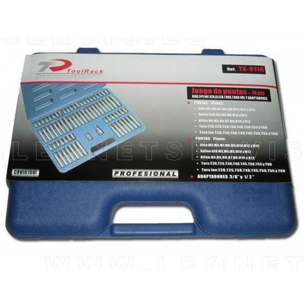 Incorpora 74 puntas diferentes de los tipos Torx, Torx inviolable, Allen, XZN y Ribe con longitudes de 30 y 75mm.