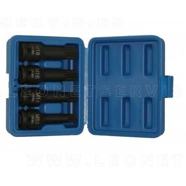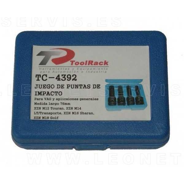 Kit de herramientas compuesto por 4 puntas válidas aplicaciones generales y especiales para vehículos VAG.