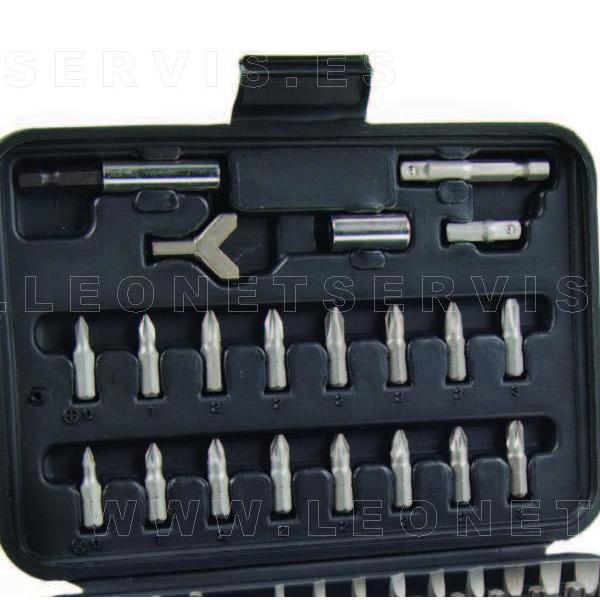 Conjunto de puntas de múltiples tipos y tamaños para utilizar en cada operación la que se adapte mejor a la misma.Se suministra en un maletín y con un portapuntas.Opiniones